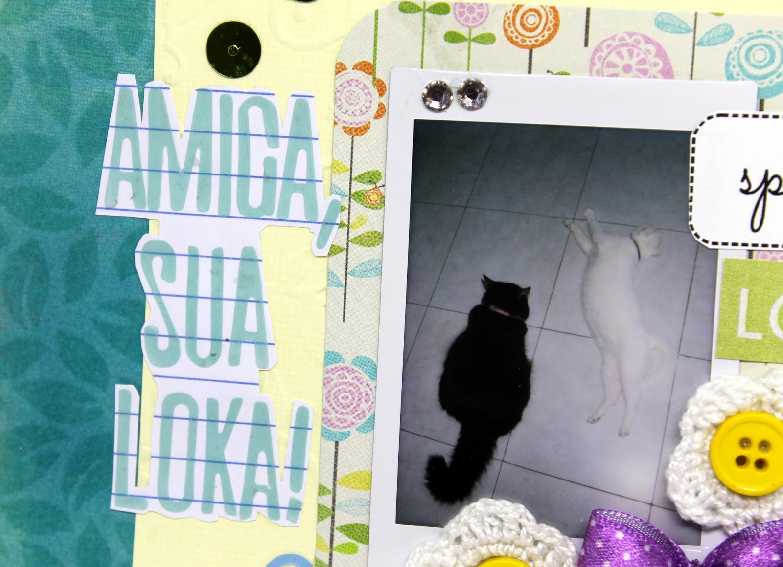 Mais uma mini página para o álbum que estou fazendo, ao longo de 2016, para minhas gatinhas. Peguei uma foto bem divertida delas, e com materias que recebi de uma troquinha com a Taty Paganoto, fiz uma página fofinha com um título bem engraçado.
